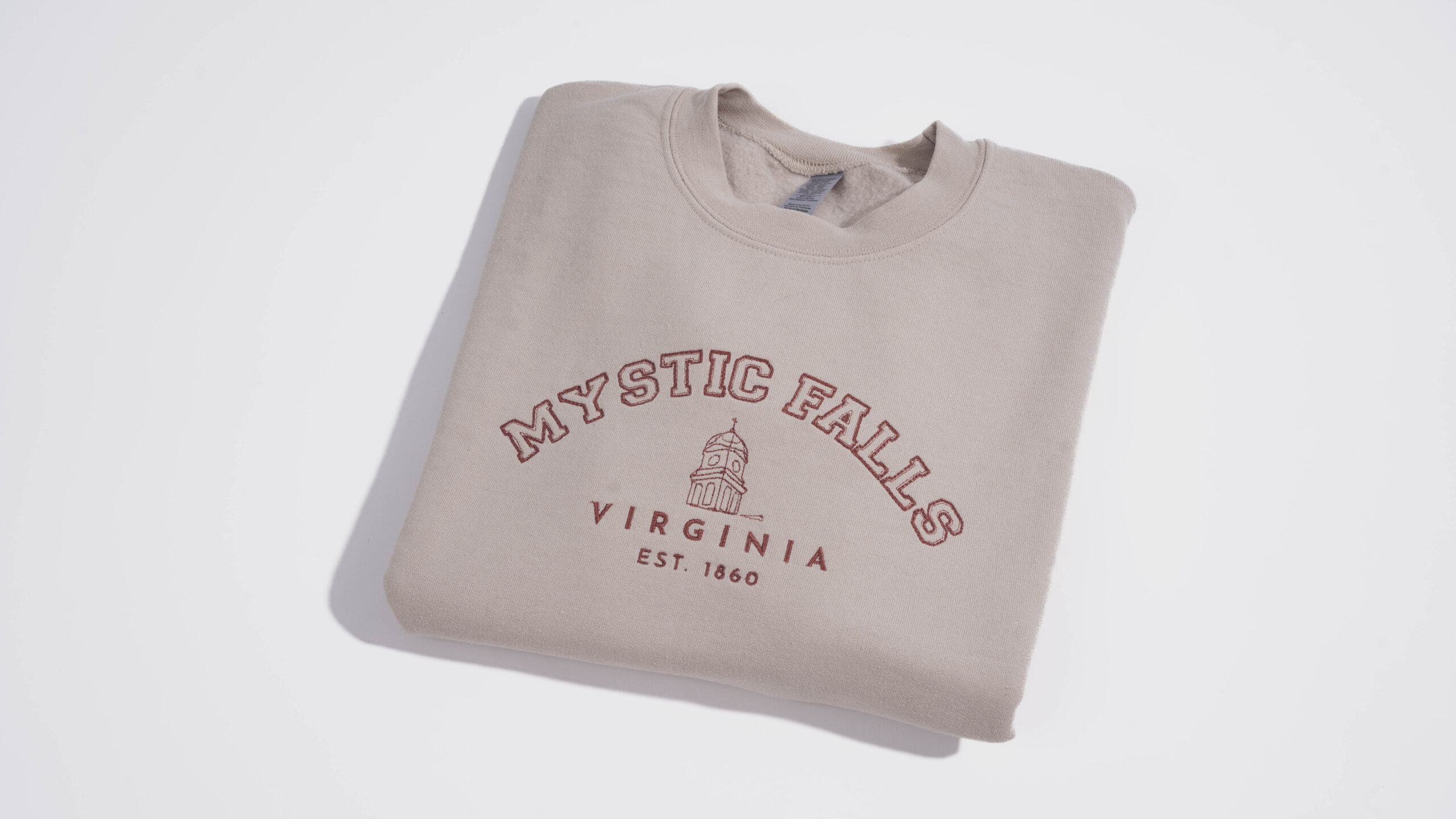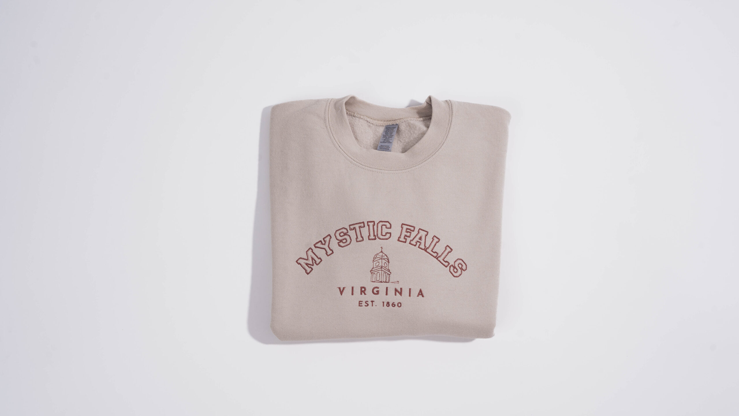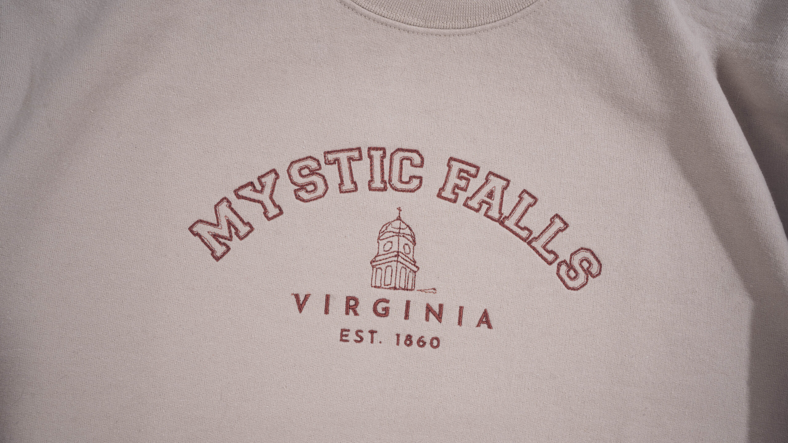 Sudadera con diseño bordado de Mystic Falls (The Vampire Diaries), para que tu cita con los hermanos Salvatore sea aún más épica. Cálida, suave y reconfortante.
